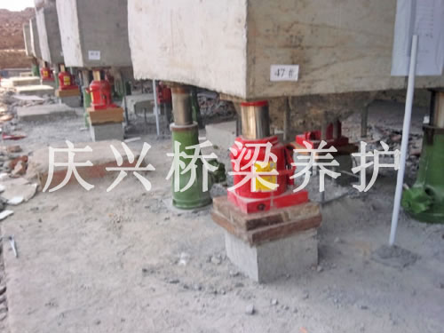 5、安裝好油壓千斤頂,同時(shí)計(jì)算好每條柱子的承重及需要頂升的高度。整體同步